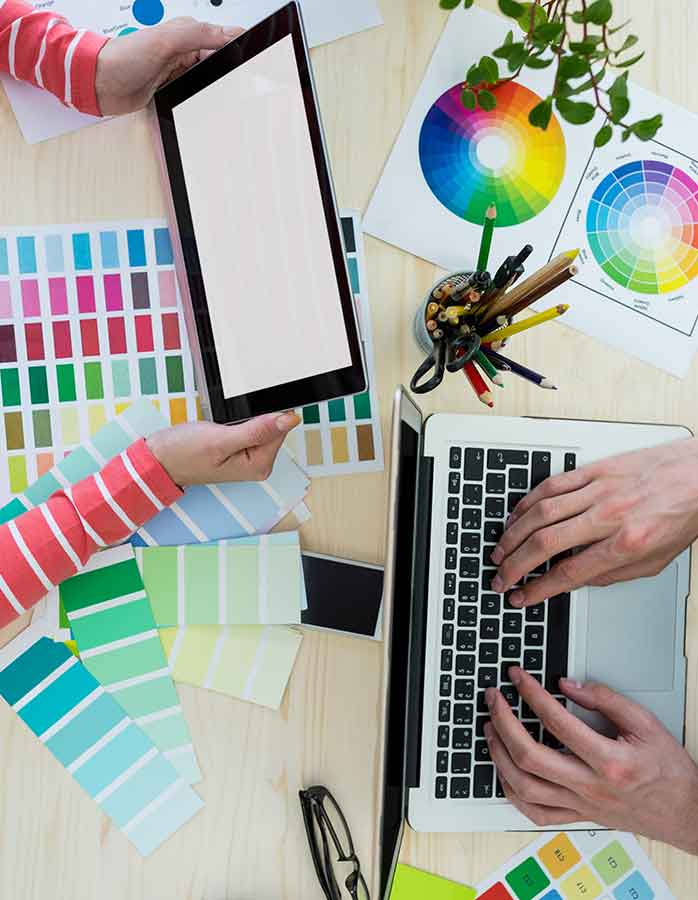 Nous imaginons, créons vos visuels de qualité avec la suite Adobe CC aux formats adéquats et nous chargeons de passer commande auprès de notre partenaire afin que vous n’ayez plus qu’à recevoir vos produits finis.